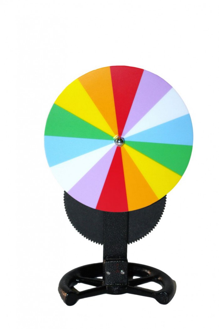 Вращающийся цветовой диск позволил Ньютону наглядно продемонстрировать свою теорию. Диск разделен на секторы цветов видимого спектра. При вращении его с высокой скоростью вы можете наблюдать, как эти цвета сливаются, образуя белый тон, превосходящий по яркости каждый из цветов по отдельности.