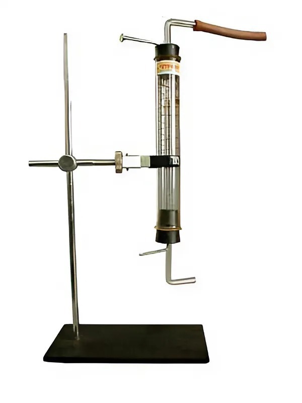 Прибор состоит из стеклянной трубки со вставленными резиновыми пробками, через которые пропущены газоотводные трубки и электроды (центральный стержень и проволочная спираль).