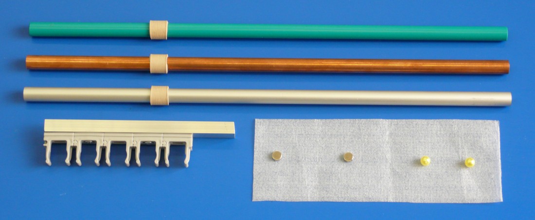 Трубки изготовлены из алюминия, меди и пластмассы. На каждой трубке имеется резиновая муфта для закрепления в держателе. Толщина стенки трубки не менее 1мм.