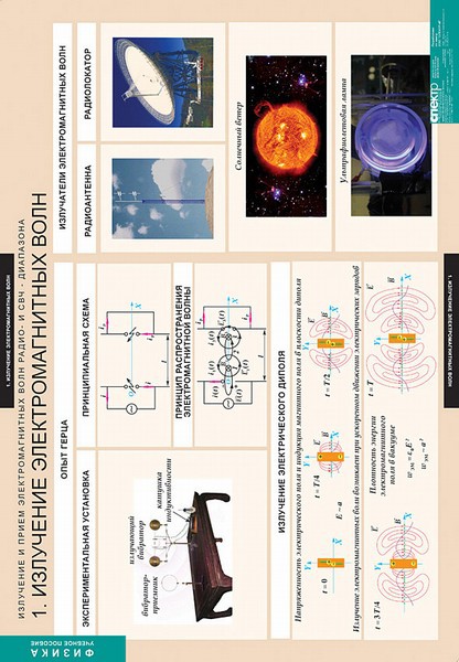 Главная Каталог Демонстрационные учебно-наглядные пособия Кабинет физики Комплект таблиц. Физика. Излучение и прием электромагнитных волн.