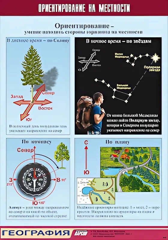 Таблица демонстрационная "Ориентирование на местности" (винил 100*140)