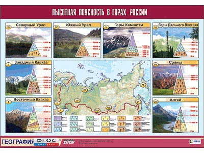 Таблица демонстрационная "Высотная поясность в горах России" (винил 100*140) - fgospostavki.ru - Тихорецк