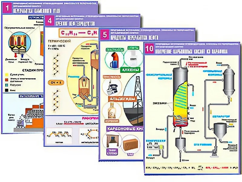 Главная Каталог Демонстрационные учебно-наглядные пособия Кабинет химии Комплект таблиц по органической химии "Природные источники углеводородов. Переработка. Синтез" (12 таблиц, формат А1, ламинированные)