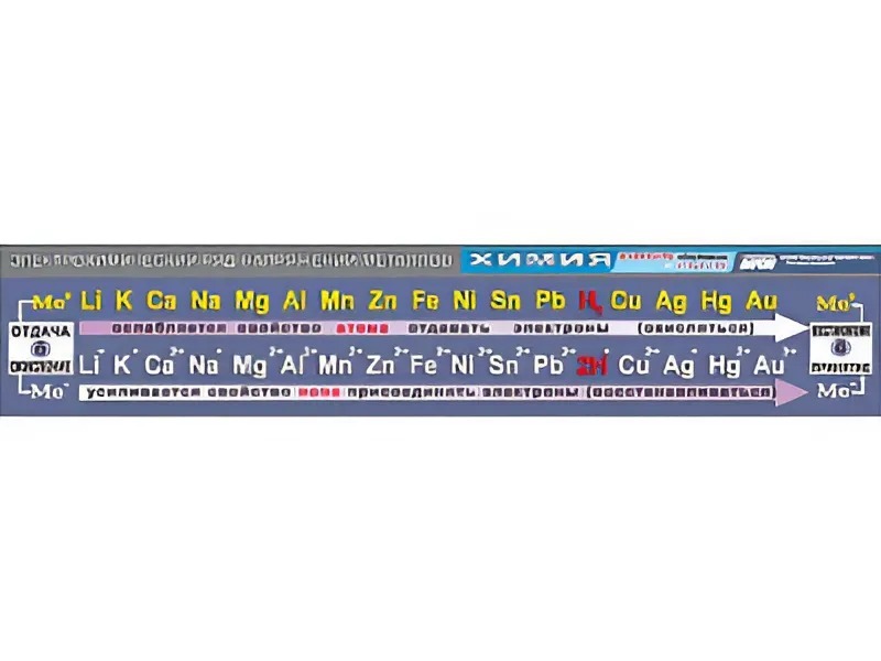 Таблица демонстрационная "Электрохимический ряд напряжений металлов" (винил 40х200) - fgospostavki.ru - Тихорецк