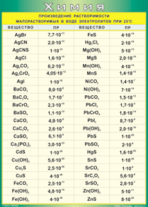 Таблица "Произведение растворимости малорастворимых в воде электролитов при 25°С" (100х140 сантиметров, винил) - fgospostavki.ru - Тихорецк