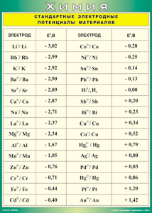 Главная Каталог Демонстрационные учебно-наглядные пособия Кабинет химии Таблица "Стандартные электродные потенциалы материалов" (100х140 сантиметров, винил)