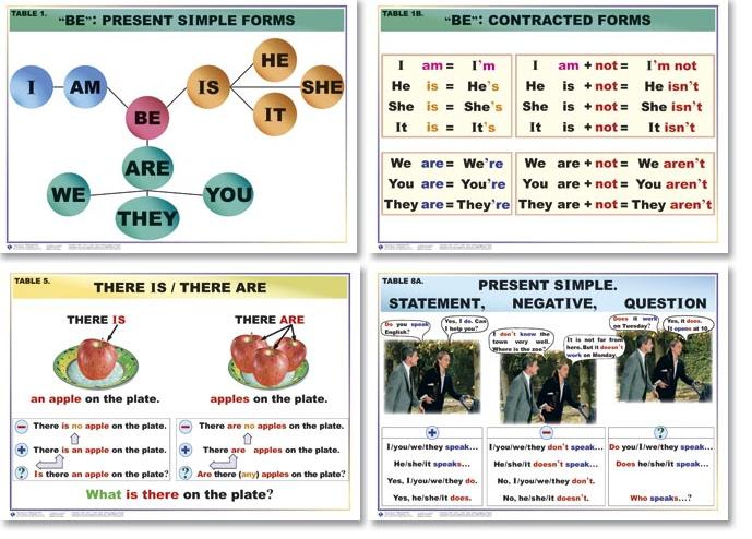 Комплект демонстрационных учебно-наглядных таблиц - познавательный и информационный материал на темы начального курса грамматики английского языка: