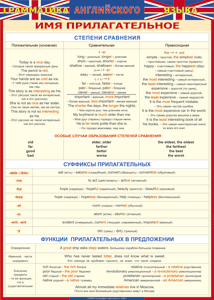Главная Каталог Демонстрационные учебно-наглядные пособия Кабинет иностранных языков Таблица "Грамматика английского языка. Имя прилагательное" (100х140 сантиметров, винил)