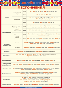 Таблица "Грамматика английского языка. Местоимения" (100х140 сантиметров, винил)