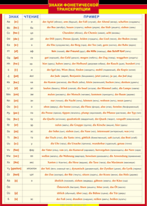 Таблица "Грамматика немецкого языка. Знаки фонетической транскрипции"