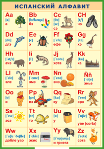 Главная Каталог Демонстрационные учебно-наглядные пособия Кабинет иностранных языков Таблица "Испанский алфавит в картинках (с транскрипцией)" (100х140 сантиметров, винил)