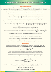 Таблица "Квадратные уравнения" (100х140 сантиметров, винил) - fgospostavki.ru - Тихорецк