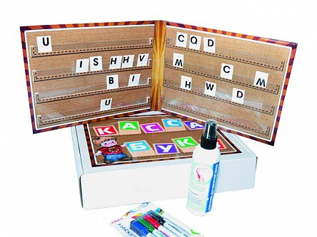 Представляет собой планшет-книжку с набором букв английского алфавита и вкладочными строками для хранения и выкладки букв.