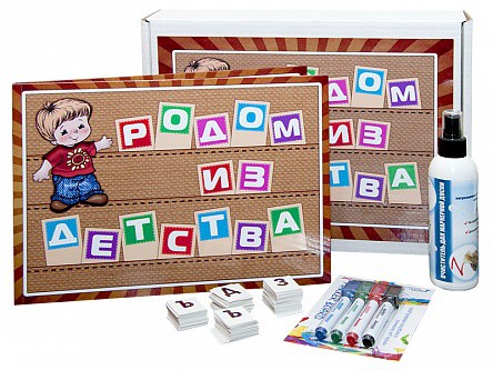 В левой половине планшета размещается касса букв русского алфавита, повторяющихся различное количество раз. В правой половине планшета выкладываются сочетания букв, слов. В набор входят 10 пустых маркерных карточек для вписывания необходимых букв.