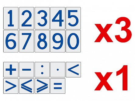 Комплект тематических магнитов представляет собой набор, состоящий из цифр и математических знаков, предназначенных для крепления на магнитно-маркерных досках и отображения условий для решения математических задач и примеров.