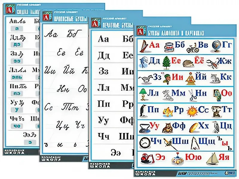 Комплект таблиц "Русский алфавит" (4 таблицы, формат А1, матовое ламинирование)