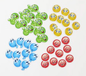 В наборе 40 смайликов. По 10 каждого цвета.