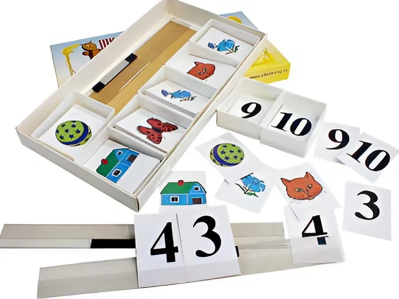Предназначено для использования на уроках математики в первом классе начальной школы, позволяет формировать у детей навыки счета в пределах двадцати, сложения и вычитания в пределах десяти. Учебное пособие представляет собой набор карточек с цифрами от 1 до 10 и пяти видов фигурок разного цвета.