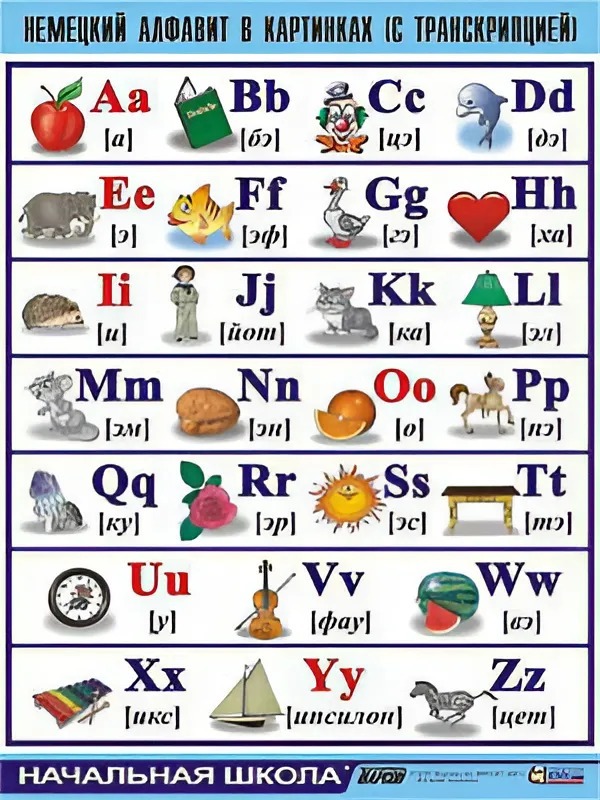 Главная Каталог Демонстрационные учебно-наглядные пособия Кабинет начальной школы Таблица демонстрационная "Немецкий алфавит в картинках" (винил 100*140)