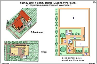 1. Схема жилого дома с хозяйственными постройками, соединенными в единый комплекс. Зона жилого дома