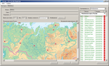 300 вопросов трех уровней сложности, относящиеся к рельефу, гидрографии, береговой линии и основным городам России.