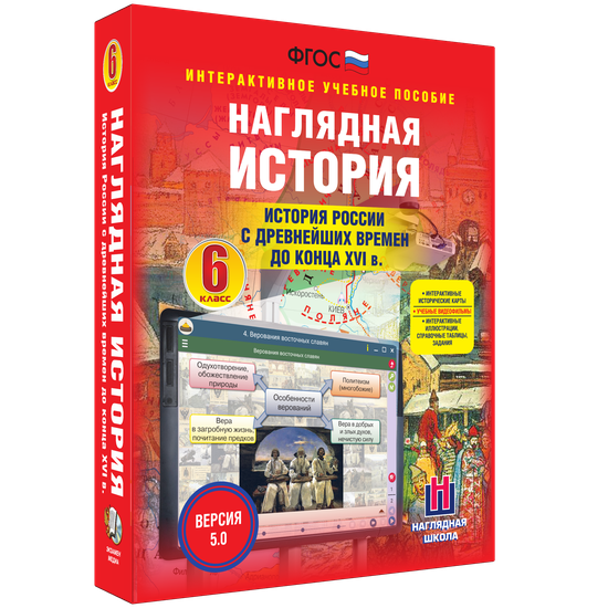 Интерактивное учебное пособие разработано с учётом ФГОС ООО и примерной программы по истории основного общего образования. Материал интерактивного учебного пособия «История России с древнейших времен до конца XVI века. 6 класс» содержит темы курса истории России 6 класса. Пособие можно использовать с любыми учебниками, входящими в Федеральный перечень.