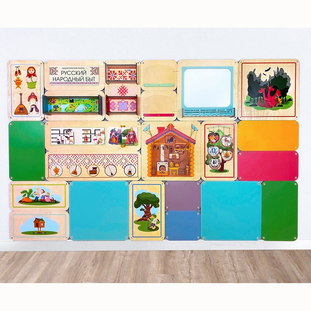 Набор дополнительных модулей для комбинации с дидактическими настенными панелями. Отличное интерьерное решение для оформления помещений в едином стиле.