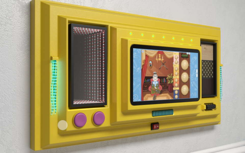 Перед вами отличный развивающий интерактивный детский комплекс, который сможет удивить и порадовать ребят обилием своих возможностей! Что же вы сможете увидеть на этой замечательной панели солнечного цвета? Например тут есть фибероптические волокна, которые светятся очень четко и ярко. Такие волокна видны даже при полностью освещенном помещении! Они помогут развить у ребят зрительную память, а также смогут снимать у детей стресс. Модуль бесконечность - еще одно открытие! Он сможет порадовать малышей самыми разнообразными яркими цветами и красивыми эффектами. Модуль реагирует на звук и в зависимости от его интенсивности меняют свой цвет. Так у детей может развиваться голос и зрительная память. Специальная панель с различными на ощупь поверхностями поможет слабовидящим детям развить сенсомоторную чувствительность пальцев. Также для развития чувствительности тут есть тактильная ребристая кнопка и барабан с маленькими неострыми шипами. А для развития логопедических навыков и мышления в центре панели расположен специальный интерактивный планшет с множеством веселых игр. Все игровые элементы на панели изготовлены качественно и на долгие года работы. Разнообразие игр и упражнений не оставит равнодушным детей и панель “Мир веселья” подарит малышам массу положительных эмоций.