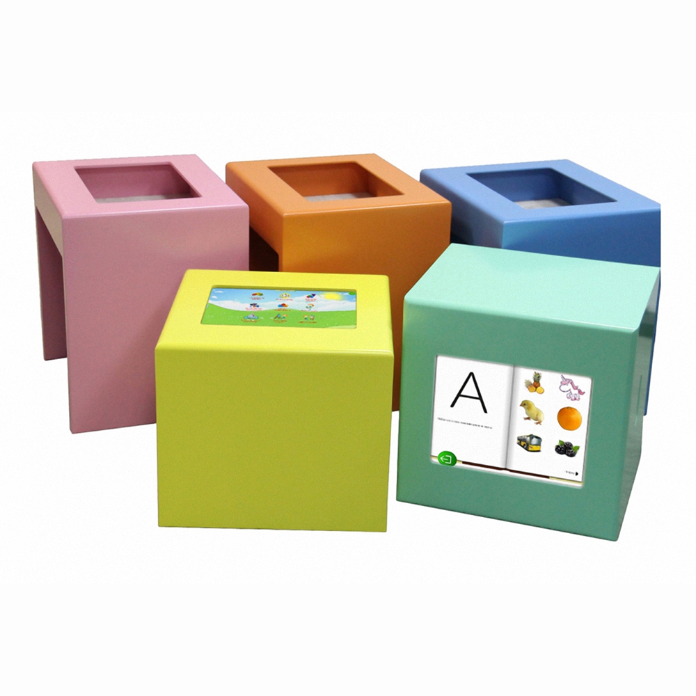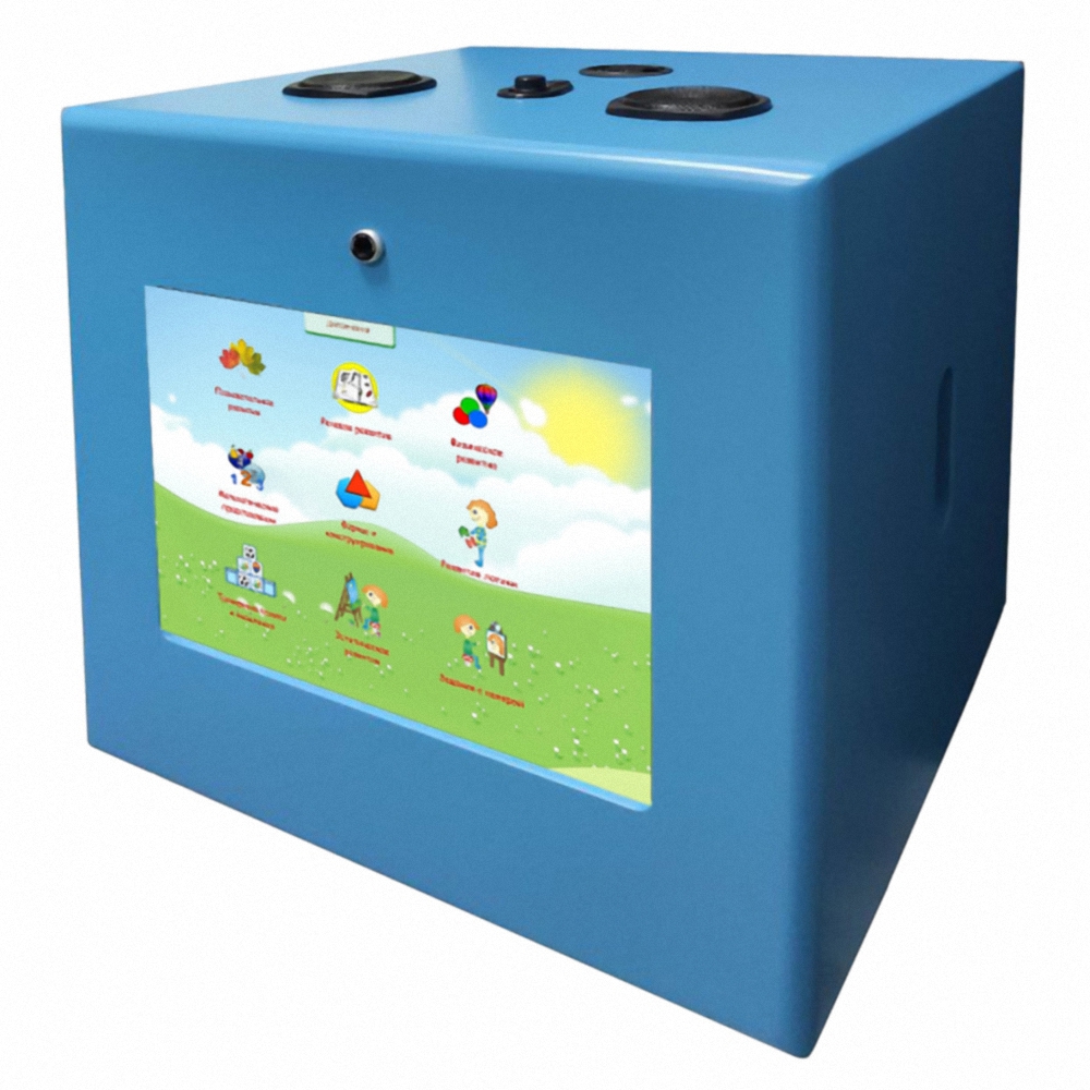 Детский игровой терминал «Интерактивный кубик» – это мультимедийная сенсорная панель в ярком декорированном корпусе, выполненном в форме кубика.
