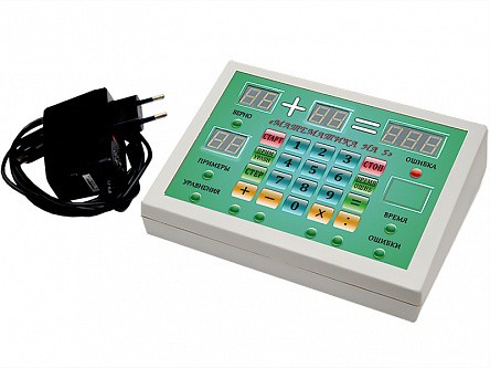 Интерактивный тренажерный модуль представляет собой мобильный светодинамический обучающий пульт с цифровыми индикаторами и тактильной клавиатурой для ввода чисел и управления режимами. Тренажер генерирует задание в виде примера или уравнения, ведет подсчет верных и неверных ответов ученика, а также затраченного на решение времени.