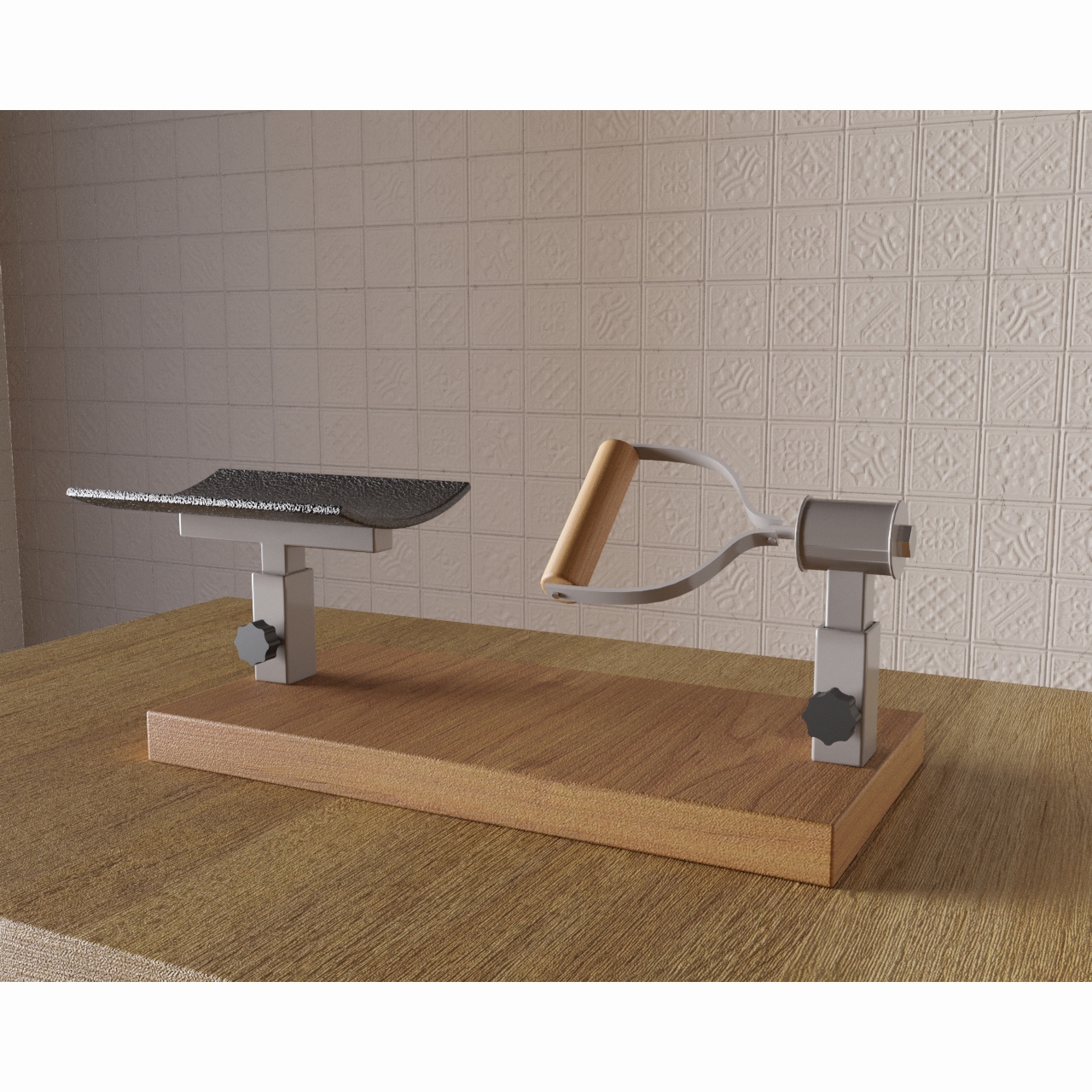 Состоит из подставки для руки и поручня, с которым необходимо взаимодействовать. После того, как ребенок освоил движения, он учится регулировать их интенсивность и плавность.