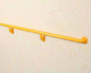 Поручень направляющий с нижними кронштейнами предназначен для обеспечения информирования при движении, как для тотально слепого человека, так и для слабовидящего человека, также для колясочника. Поручни антибактериальные изготавливаются со специальным нейлоновым покрытием. Бактерии на таких поверхностях погибают в течении 24 часов.