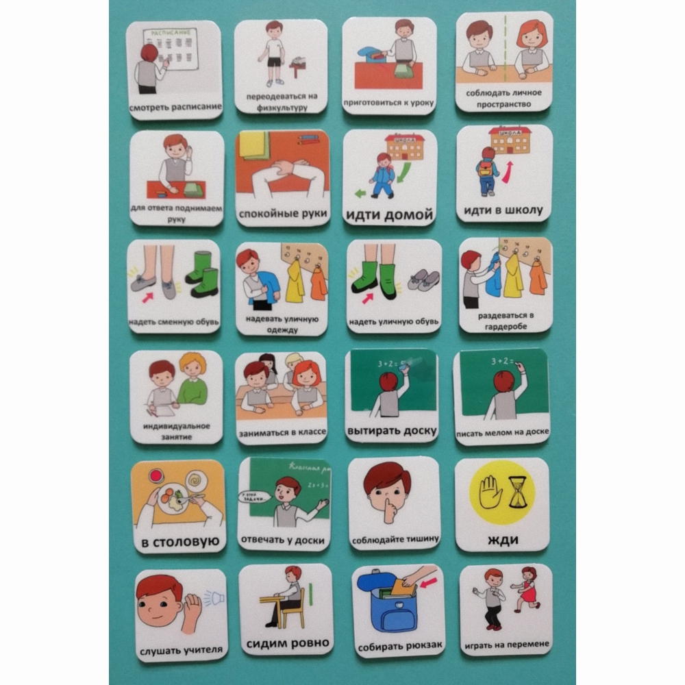 Карточки PECS – система альтернативной коммуникации для детей, у которых трудности с речью и общением. Карточки "Школа" помогут вашему ребенку в повседневной жизни и в школе, уменьшат неприемлемое поведение, способствуют улучшению взаимопонимания. Они пригодны для использования в коммуникативных книгах и визуальных расписаниях.