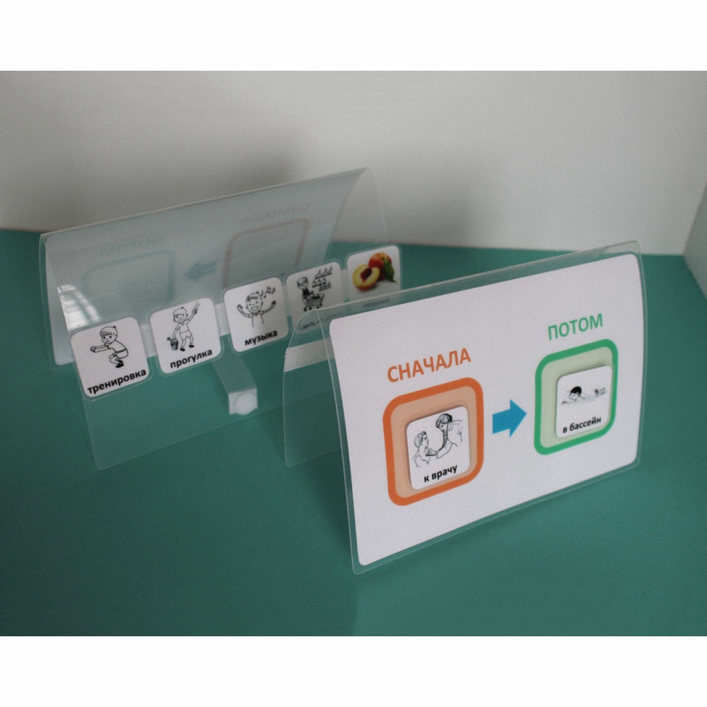 Визуальное расписание "Сначала-Потом" - ламинированный лист А 4. с липучками и крепежом для устойчивости.