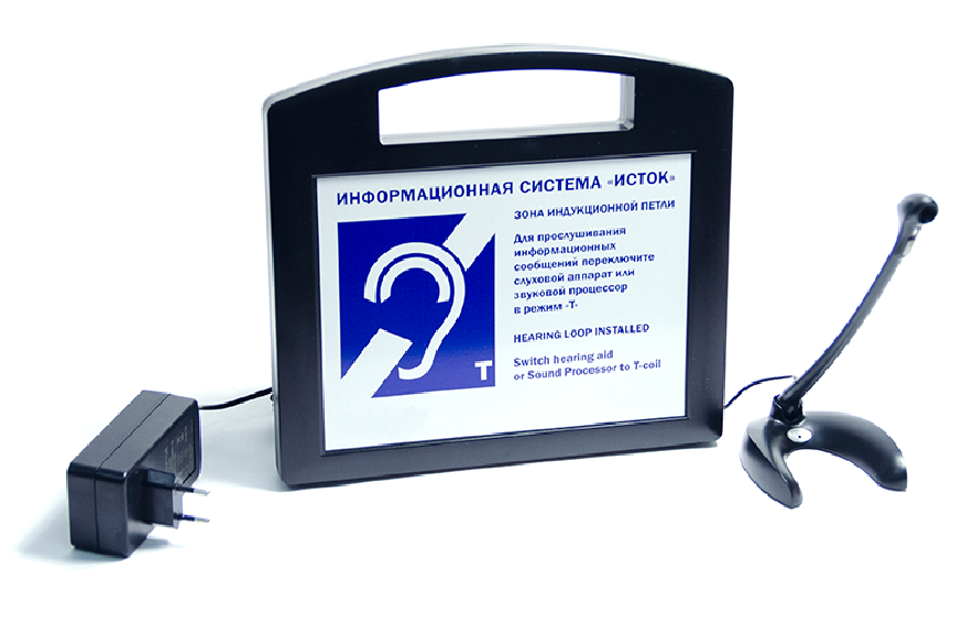 Система информационная переносная предназначена для передачи аудиоинформации лицам с нарушенной функцией слуха при повышенном уровне окружающего шума или при наличии преграды между собеседниками в общественных и многолюдных местах, в зонах обслуживания населения (возле стоек информации, кассах).