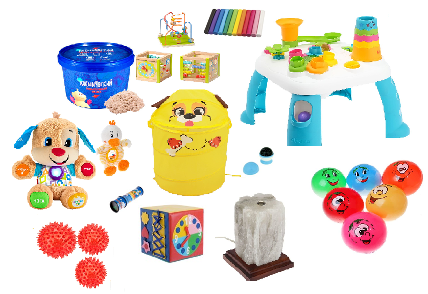 20. Три набора Интерактивных игрушек с различными световыми и/или звуковыми эффектами, направленные на обучение, развитие памяти, речи, внмательности, успокоение, а так же, активизации ЦНС, развития сенсорики, тактильных ощущений и моторики;