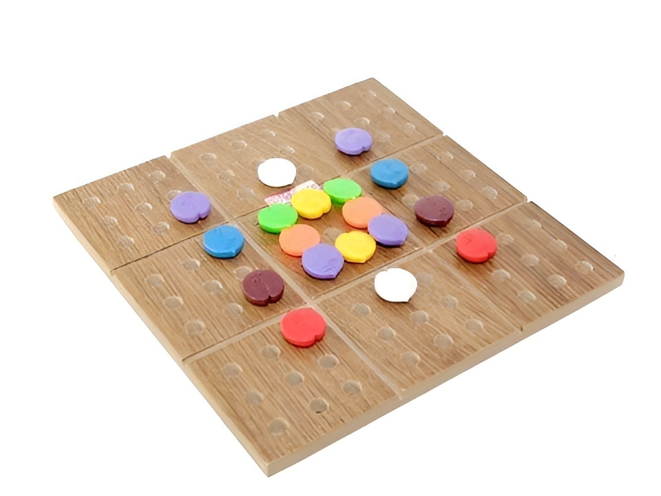 Игровая поверхность поделена на 9 квадратов по 9 отверстий (ячеек) в каждом.
