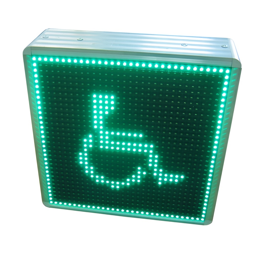 Световое поле маяка состоит из светодиодов, отображающих один или несколько знаков (с интервалом): информационные или знаки доступности, текстовые надписи, например, "Вход", "Выход"и т.д.). Изображения, текстовые надписи, время обновления задаются по потребности Клиента.