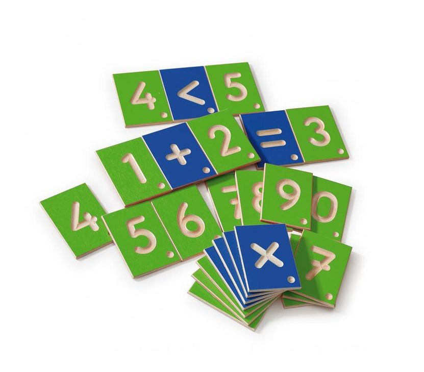 Набор состоит из 29 элементов, с помощью которых происходит знакомство ребенка с основами математики (цифрами, счетом, сложением и вычитанием). Может применяться также при обучении детей с ДЦП и нарушением зрения.