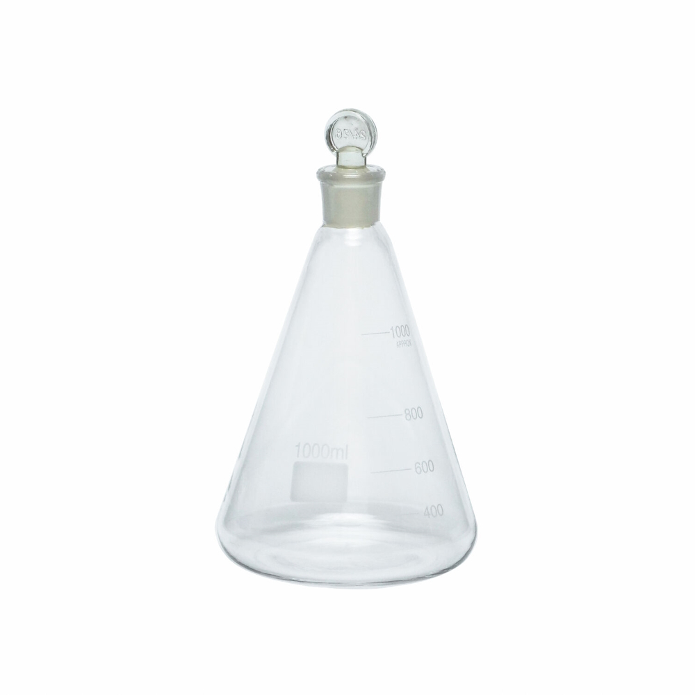 Колба коническая со шлифом 1000 мл. предназначена для использования в различных промышленных и медицинских лабораториях в качестве сосуда для хранения различных жидкостей. Кроме того, коническая колба используется и в общеобразовательных учреждениях на уроках химии, физики, биологии для хранения различных веществ  и проведения  демонстрационных опытов.