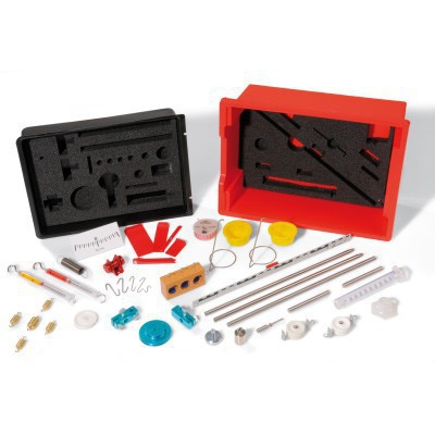 Набор оборудования для проведения 23 учебных опытов по механике твердых тел. Поставляется в прочной пластмассовой коробке с пенопластовыми вкладышами, выполненными по форме элементов оборудования, и с прозрачной крышкой. В комплект поставки входит компакт-диск, содержащий указания по подготовке и проведению опытов. Подготовка и проведение опытов осуществляются на основании для комплекта для учебных опытов, так что установки для опытов не занимают много места, оставаясь ясными и понятными с точки зрения компоновки и целей эксперимента.