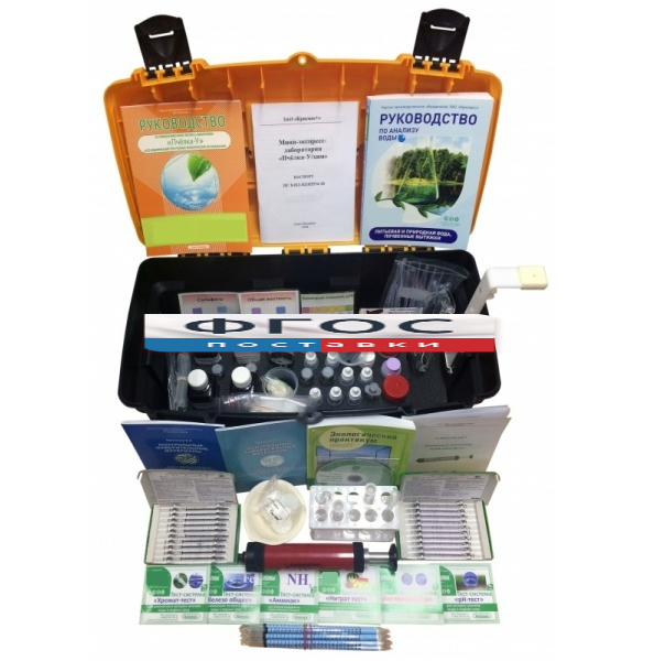 Мини-экспресс-лаборатория учебная «Пчёлка-У/хим» представляет собой набор тестовых средств и готовых химических реагентов и оборудования для исследований различных показателей (14 показателей) экологического состояния факторов окружающей среды.