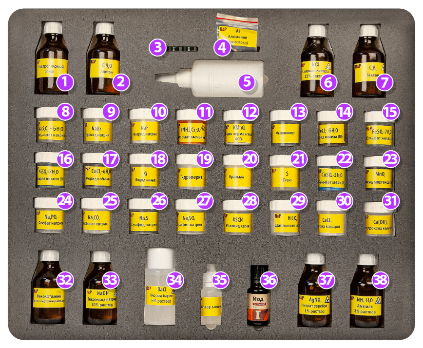 Раздел 2. Комплекс оснащения предметных кабинетов, Подраздел 15. Кабинет химии, 2.15.110. Комплект химических реактивов