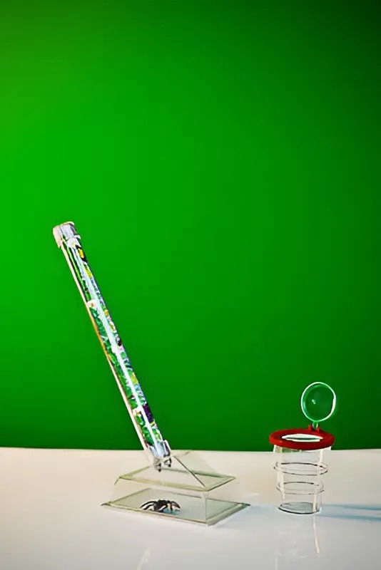 Ловушка представляет собой прозрачную емкость с выдвижной крышкой. Прозрачность дает возможность рассмотреть насекомое прямо в ловушке, не перекладывая его в другой сосуд. Длина ручки позволяет использовать любую ее часть в зависимости от размеров и прыткости насекомых (можно взяться за ручку непосредственно у основания ловушки или за самый край). Поскольку ручка тоже прозрачная, ее можно использовать для разделения некоторых насекомых в случае необходимости, вынув цветной вкладыш и поместив туда насекомое.