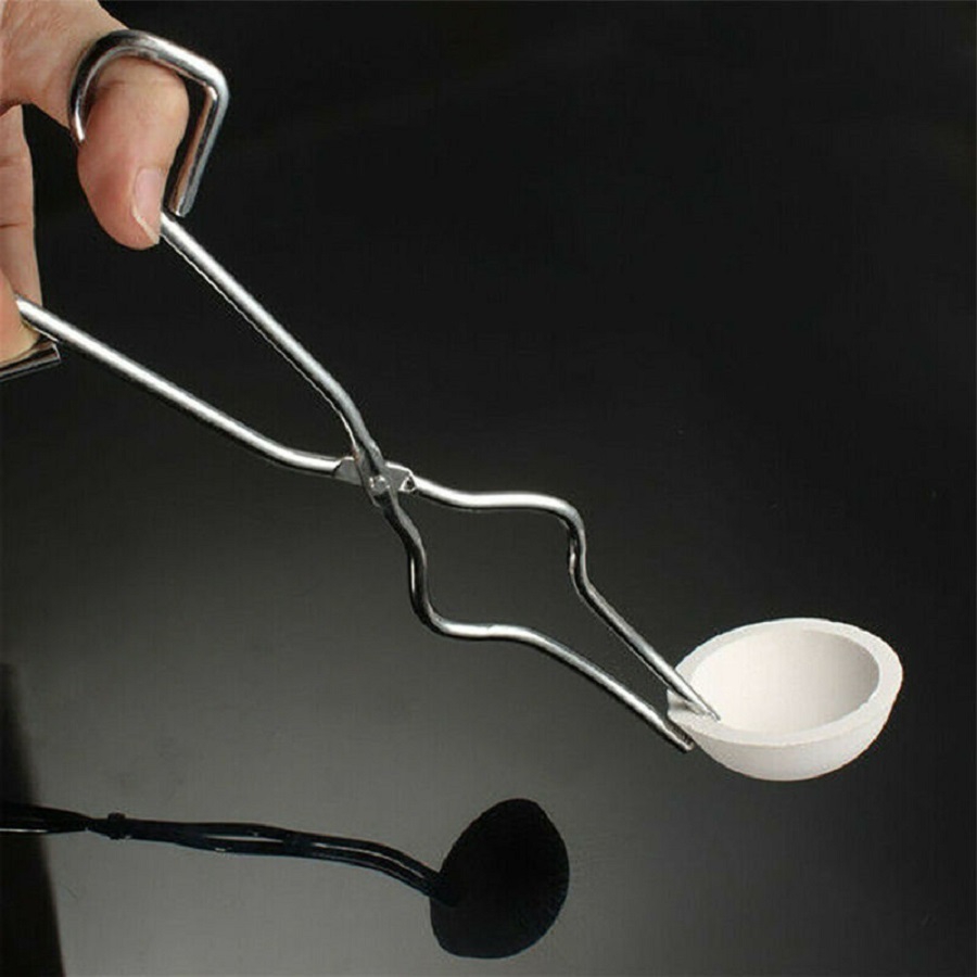 Щипцы представляют собой металлические ножницы с длинными ручками и изогнутыми концами, для лучшего захвата тиглей и другой лабораторной посуды.