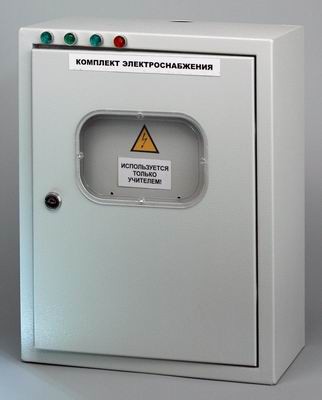 Комплект электроснабжения (КЭС) является универсальным и предназначен как для питания ИПФ (источника питания лабораторного для фронтальных работ) переменным напряжением 42В на каждую парту учащихся, для проведения лабораторных работ по физике, электротехнике, химии, а также производит подачу 220В для использования учителем.