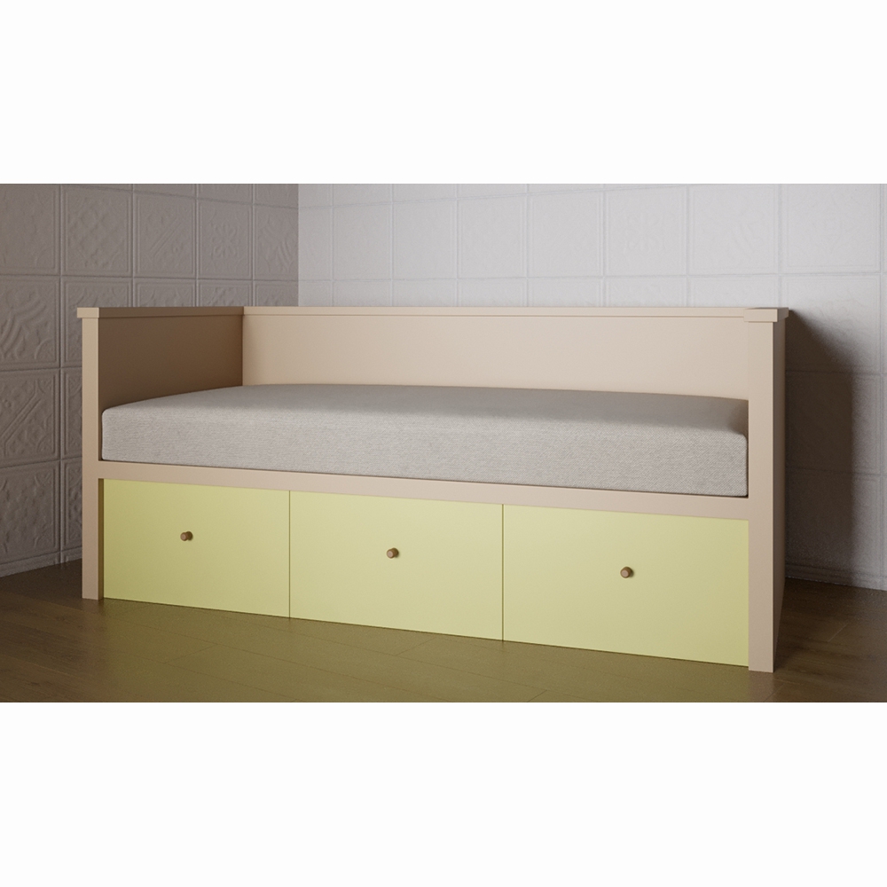 Кровать предназначена для детей от 3 до 10 лет. имеет простую лаконичную прямоугольную форму с тремя спинками – изголовьем, изножьем и одной боковой; также есть 3 ящика для хранения постельного белья или игрушек. Выполнена в нейтральной цветовой гамме, что позволяет использовать ее в помещении с любым интерьером. Конструкция кровати надежна и прочна – это гарантирует безопасную эксплуатацию. Кровать представленной модели выполняет роль спального места в группах детских садов, яслях. При помощи комплекта таких кроваток можно стильно и современно оформить спальную комнату для детей.