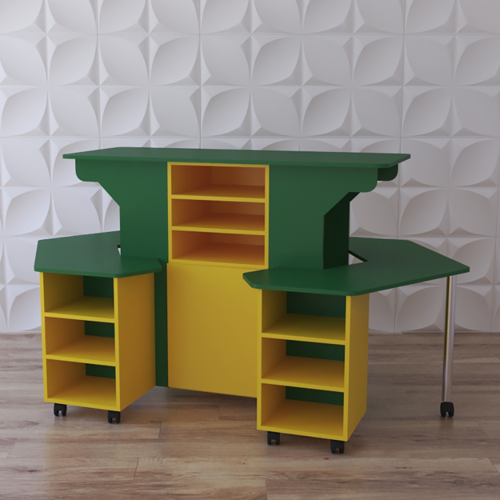 Модульный стеллаж станет отличным решением для небольшого помещения и групповых занятий с дошколятами. Небольшая площадь, однако, позволяет разместить за учебной поверхностью до 6 учеников. Конструкция позволяет хранить большое количество учебного и игрового материала. Для чего нужно: прекрасно подойдёт для обустройства детской учебной зоны с группах ДОУ, коррекционном центре или реацентре, кабинете логопеда-дефектолога или детского психолога. Вы можете купить недорого этот модуль напрямую от производителя у нас.