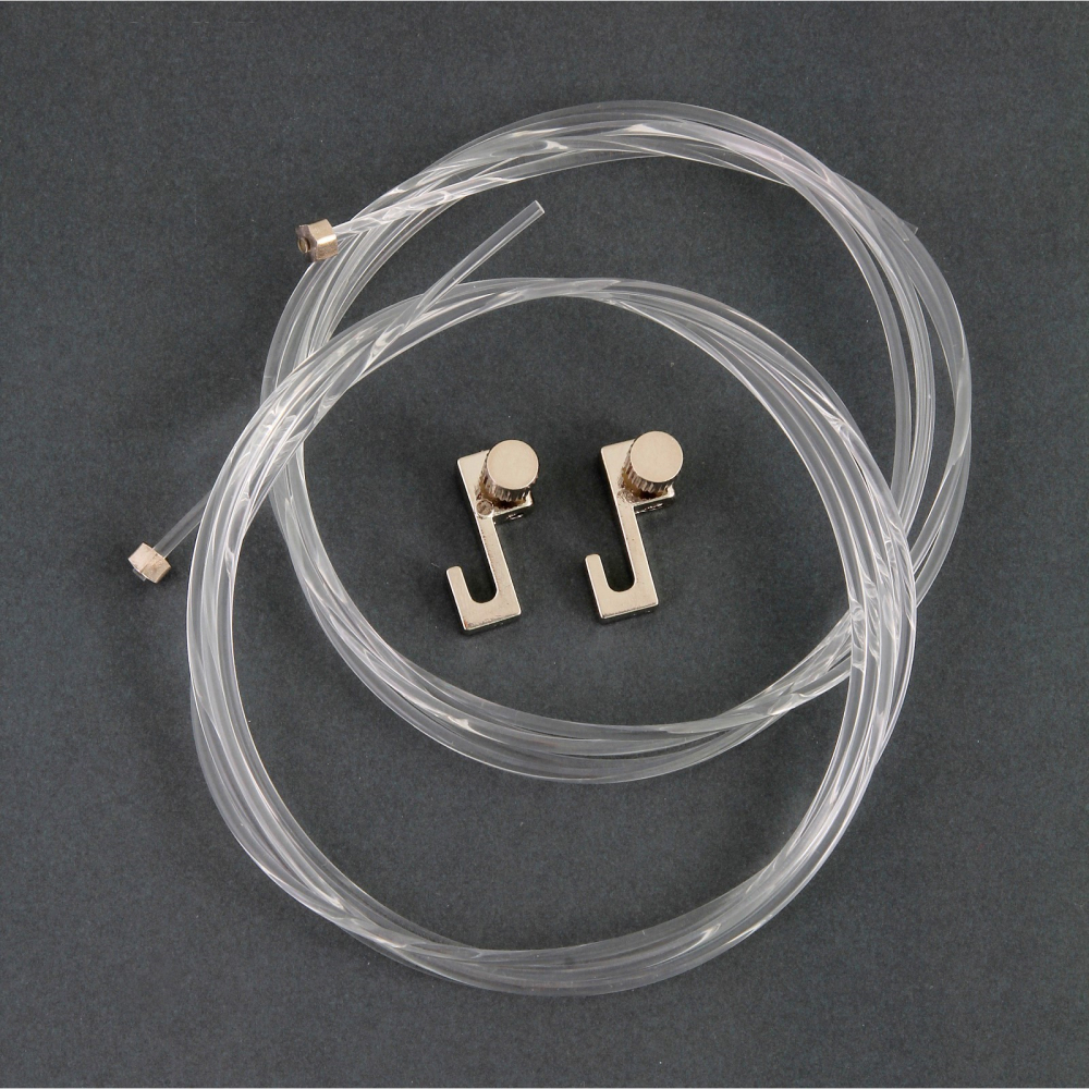 Рельсовая система, которая крепится к стене или к потолку - с тонкими подвесными лесками с крюками. К ним вы сможете вдоль стены крепить произведения искусства или презентационные материалы. При этом очень легко их переставлять, менять, устанавливать в несколько рядов и в любое положение на рельсовой системе.