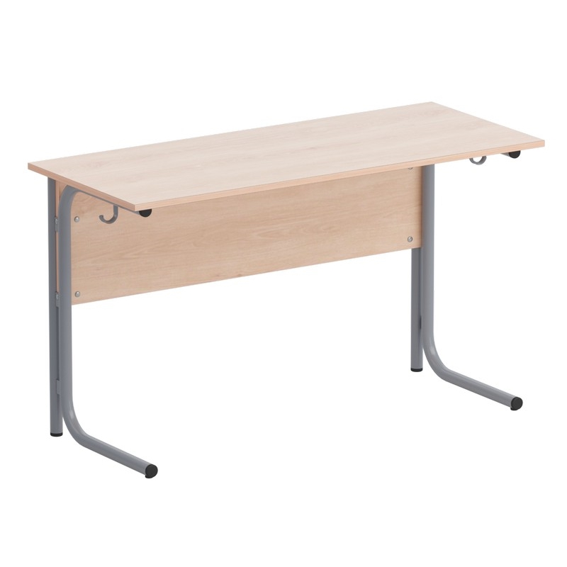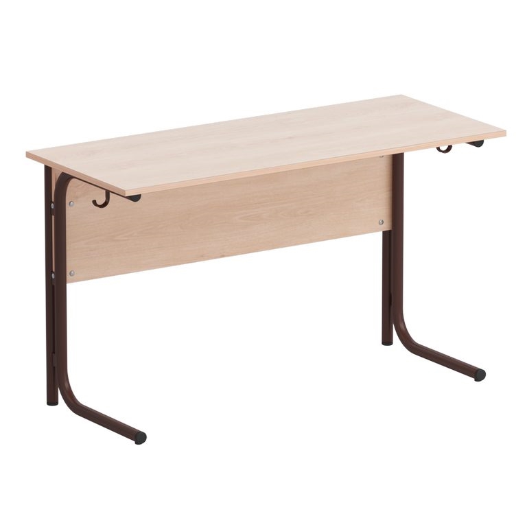 Столешница и передняя панель выполнены из ламинированной ДСП 16 мм, торцы столешницы облицованы кромкой ПВХ 2 мм. Крепление металлической основы со столешницей осуществляется методом скрытого крепления, без выступающих на рабочей поверхности болтов. Имеется два крючка для портфелей.